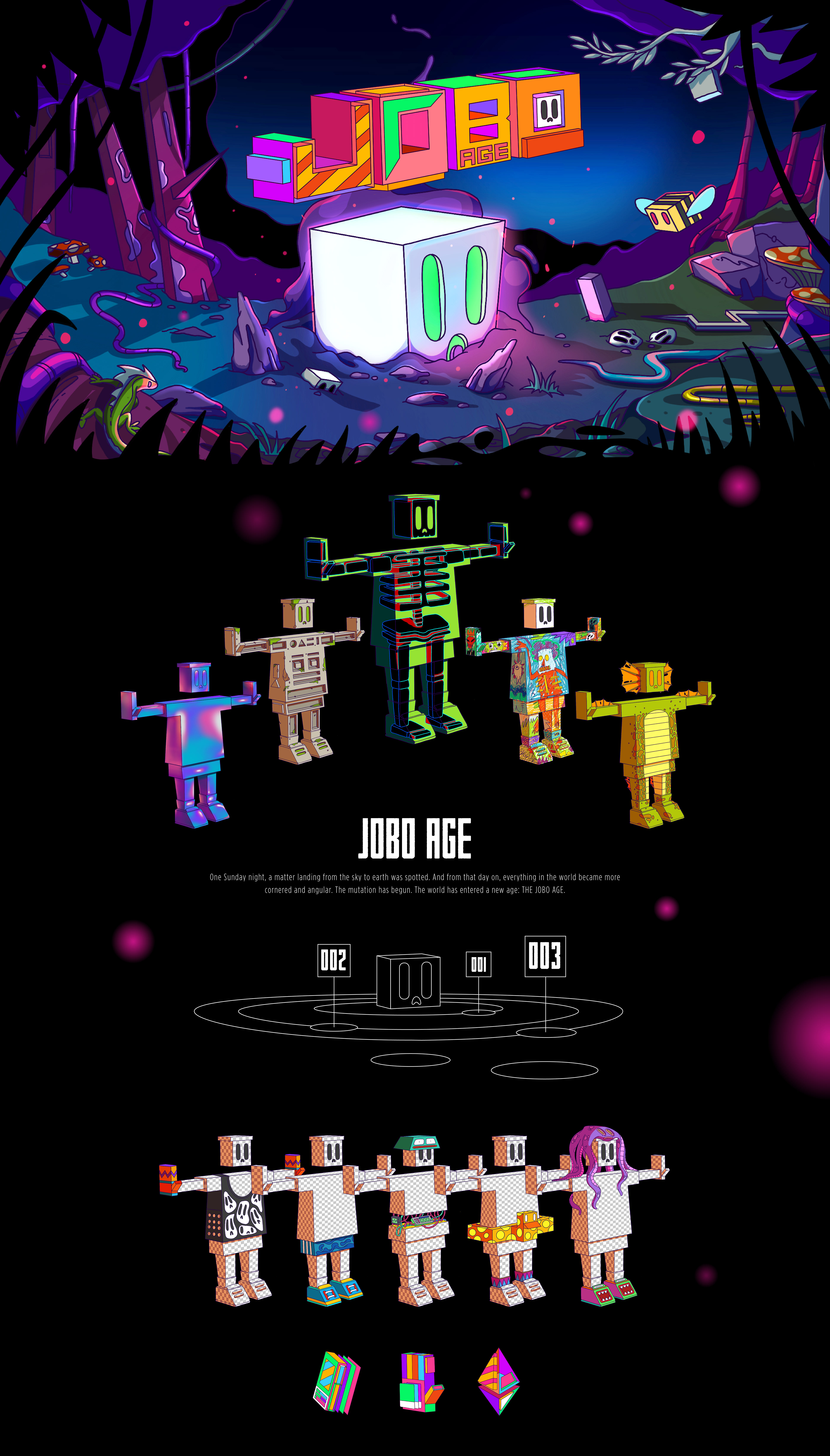 One Sunday night, a matter landing from the sky to earth was spotted. And from that day on, everything in the world became more cornered and angular. The mutation has begun. The world has entered a new age: THE JOBO AGE.